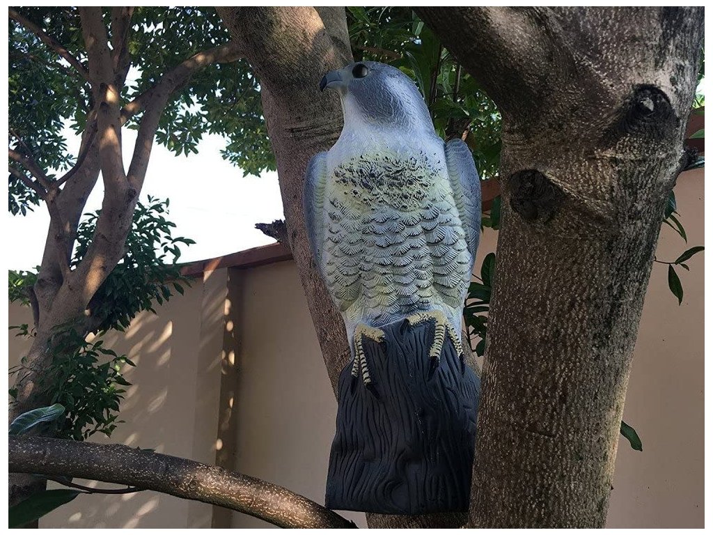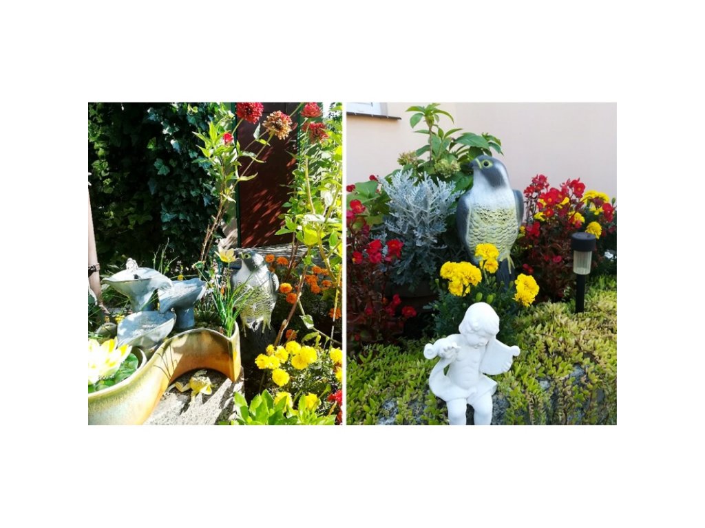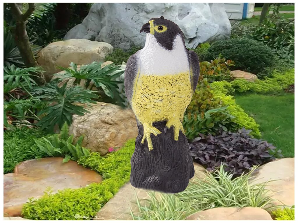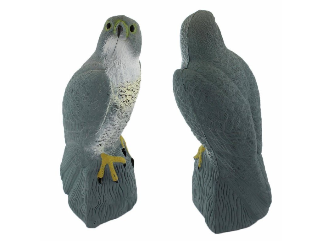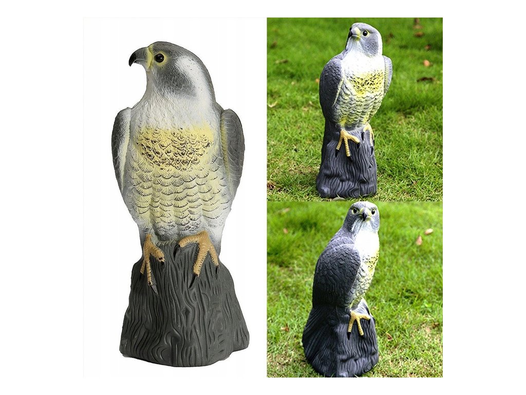 Potřebujete ochránit svoji úrodu v zahradě či v sadě před náletem různých ptáků? Nebo vám život na zahradě či na terase znepříjemňují otravné holuby? Atrapa sokola v životní velikosti vám pomůže vyhnat malé ptactvo jako holuby, sýkorky nebo drozdy z vaší zahrady, a tak ochránit úrodu. Hodí se na balkon či dům jako odpuzovač před otravným ptactvem. Přítomnost "dravce" odradí ptactvo k přiblížení. Tato realistická kopie je maximálně účinná a efektivní.