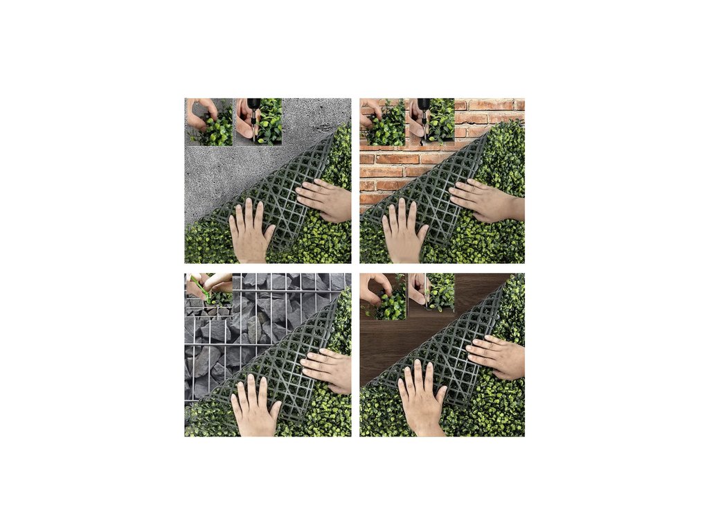 Umělý živý plot na balkon můžete připevnit snadno a rychle, a to i bez speciálních dovedností. Pokud potřebujete pokrýt větší plochu, můžete použít i více panelů a jednoduše je navzájem propojit.