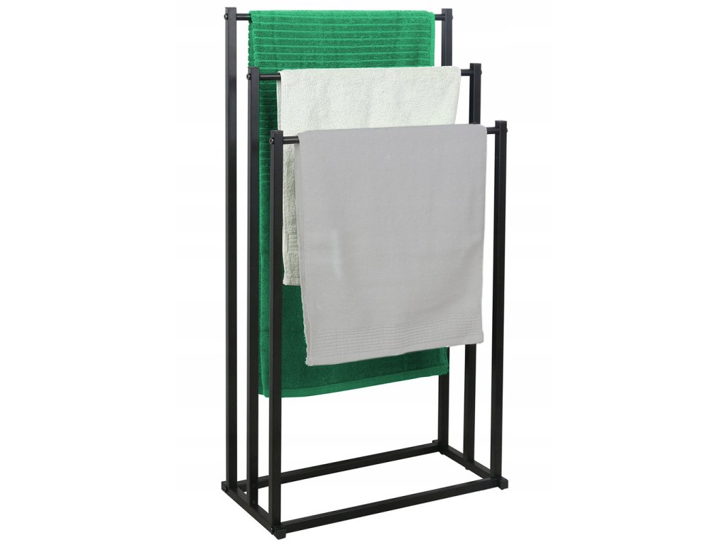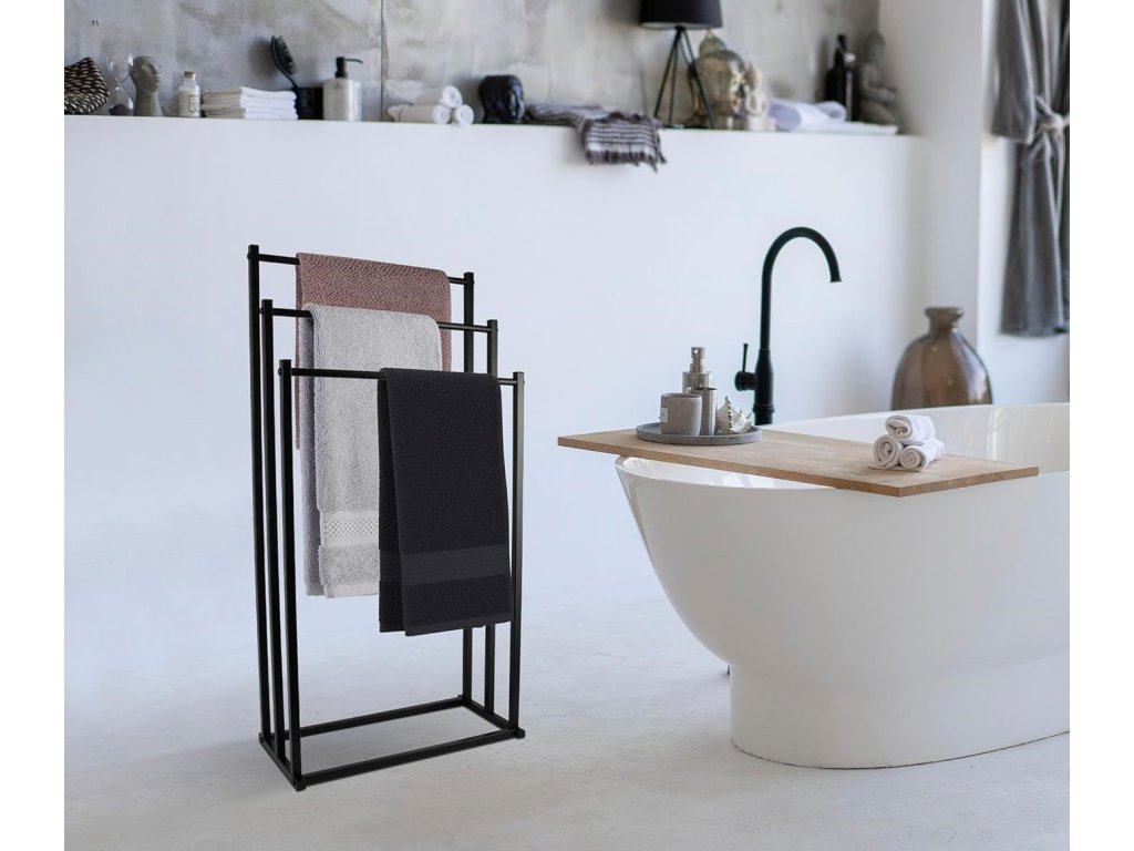 Stojan na ručníky disponuje třemi praktickými úrovněmi, které umožňují efektivní rozložení ručníků. Díky tomu máte všechny potřebné ručníky vždy po ruce, přičemž udržíte koupelnu čistou a uklizenou.