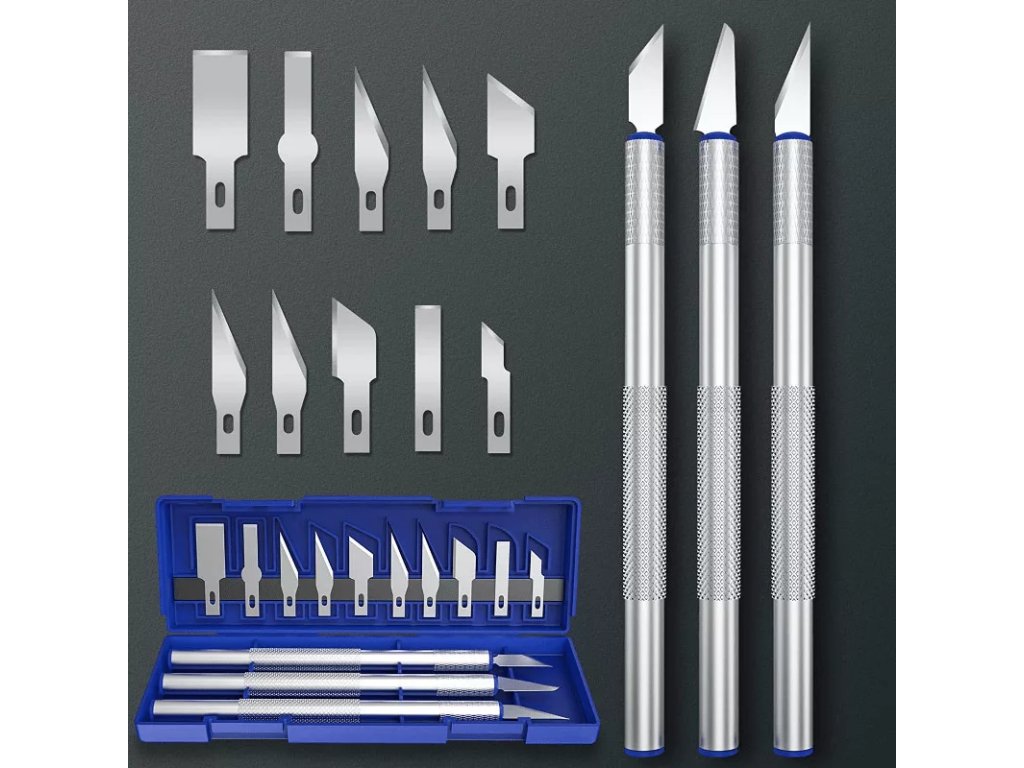 Souprava modelářských nožů obsahuje až 13 čepelí, takže si můžete vybrat tu, kterou právě potřebujete. I díky tomu je tato souprava vhodná pro vyřezávání do různých typů materiálů.