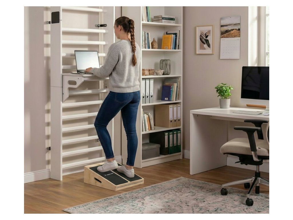 Jedinečná nastavitelná dřevěná platforma pro strečink lýtek