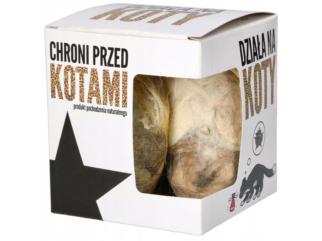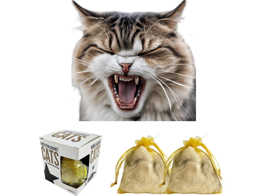 Přírodní odpuzovač koček funguje na principu odstrašení. Kočky mají citlivý čich, které je varuje před přirozenými nepřáteli, mezi něž patří i pes. Proto se v této kapse nachází směs srsti více plemen psů získaná z vybraných salonů.