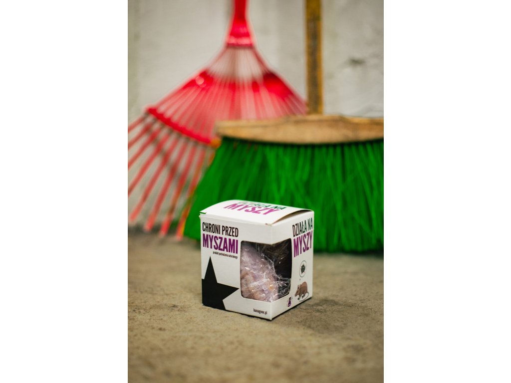 Přírodní plašič myší využívá sílu instinktu. Díky směsi psích chlupů, eukalyptového oleje a rostlinného vosku se hlodavci budou chráněné oblasti přirozeně vyhýbat. Pro člověka je však tato vůně příjemná, takže může plnit i funkci osvěžovače.