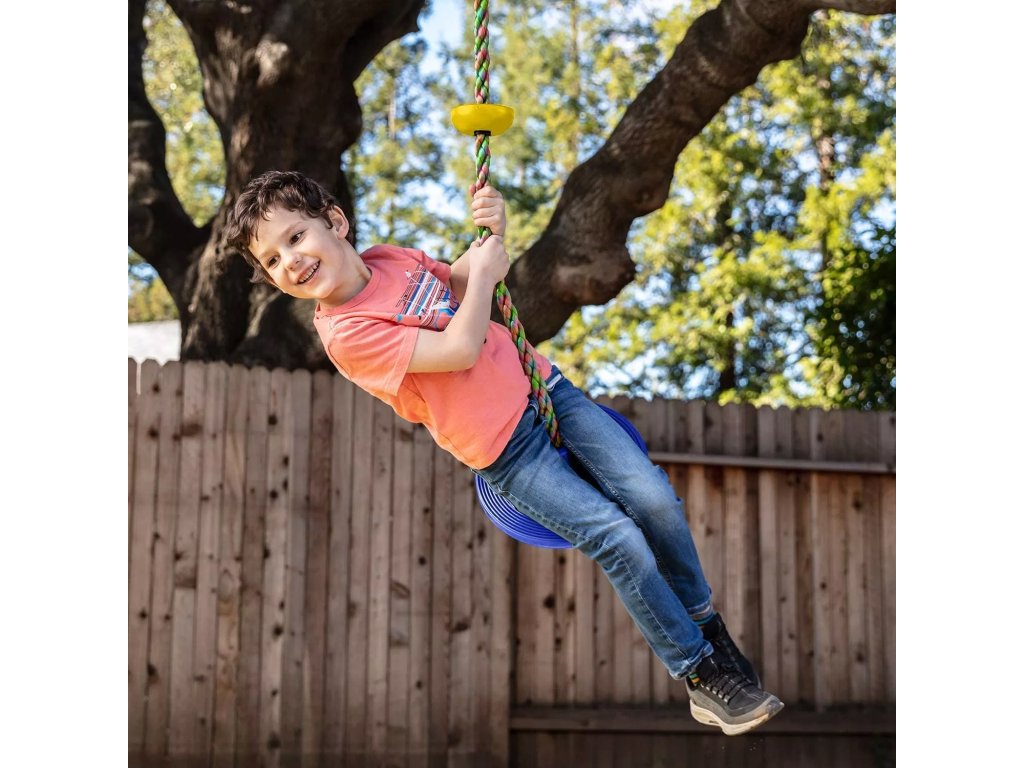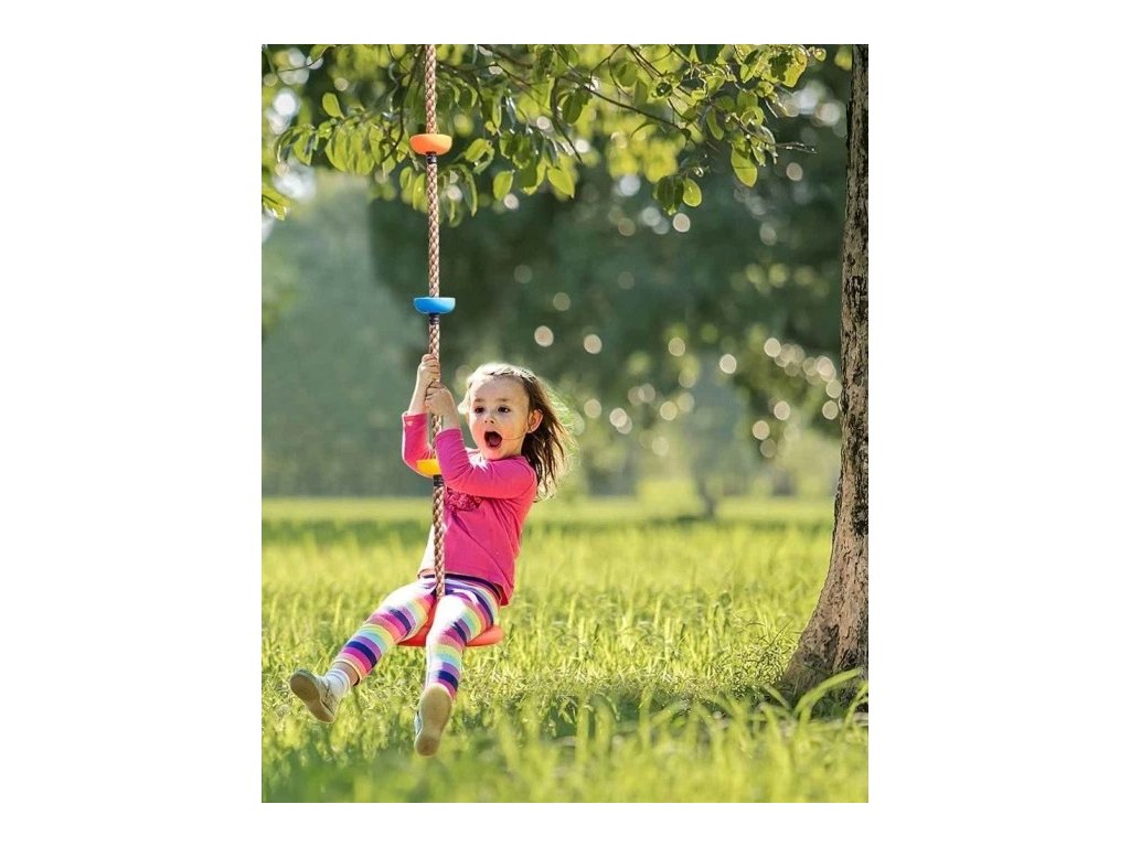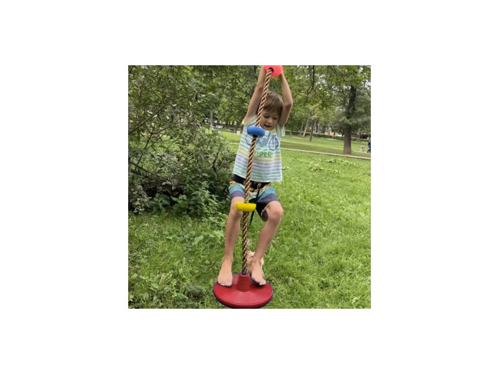Kotoučová houpačka s lezeckým lanem je skvělá pomůcka pro rozvoj motorických schopností, koordinace, síly a vytrvalosti. Dítě si může hravou formou posílit celé tělo.
