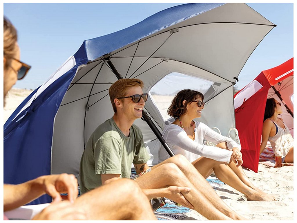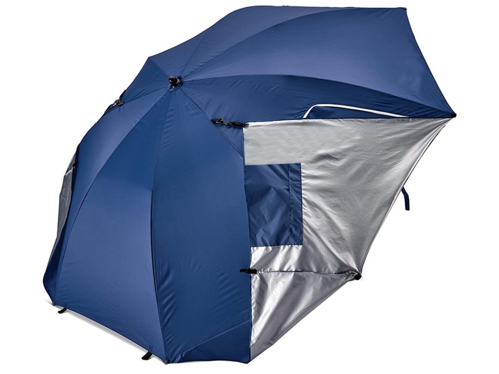 Získejte velký multifunkční plážový slunečník 2v1. Připnutím bočních clon k vnější straně vytvoříte z přístřešku klasický slunečník. Kromě toho můžete nastavit i výšku. Možnosti jeho využití se tím výrazně rozšíří.