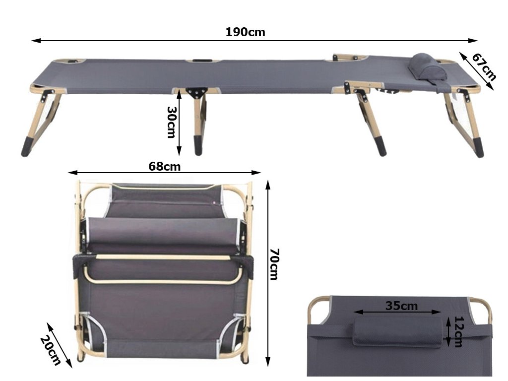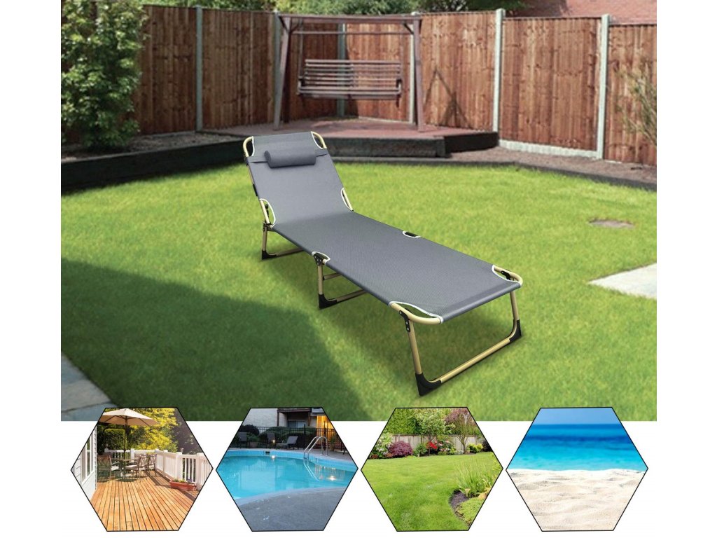 Skládací kempinková postel s polštářem je vhodná nejen do kempu, ale také na různé výlety nebo odpočinek v zahradě či na terase. Dá se totiž snadno polohovat, takže může naplnit vaše potřeby v každé situaci.