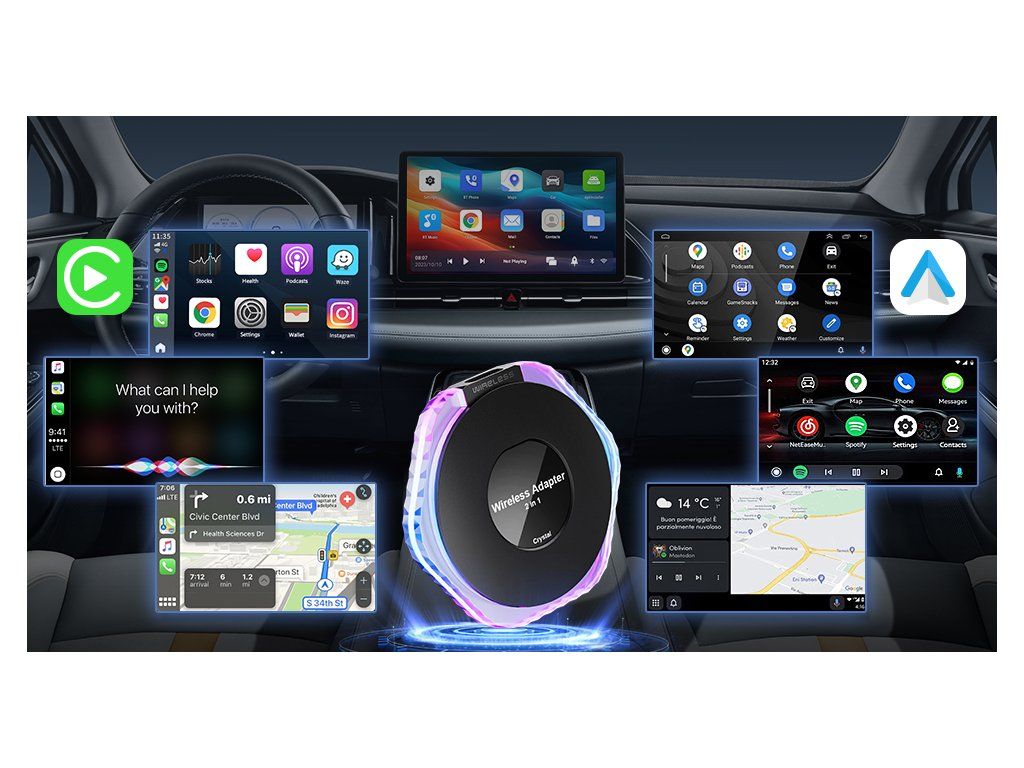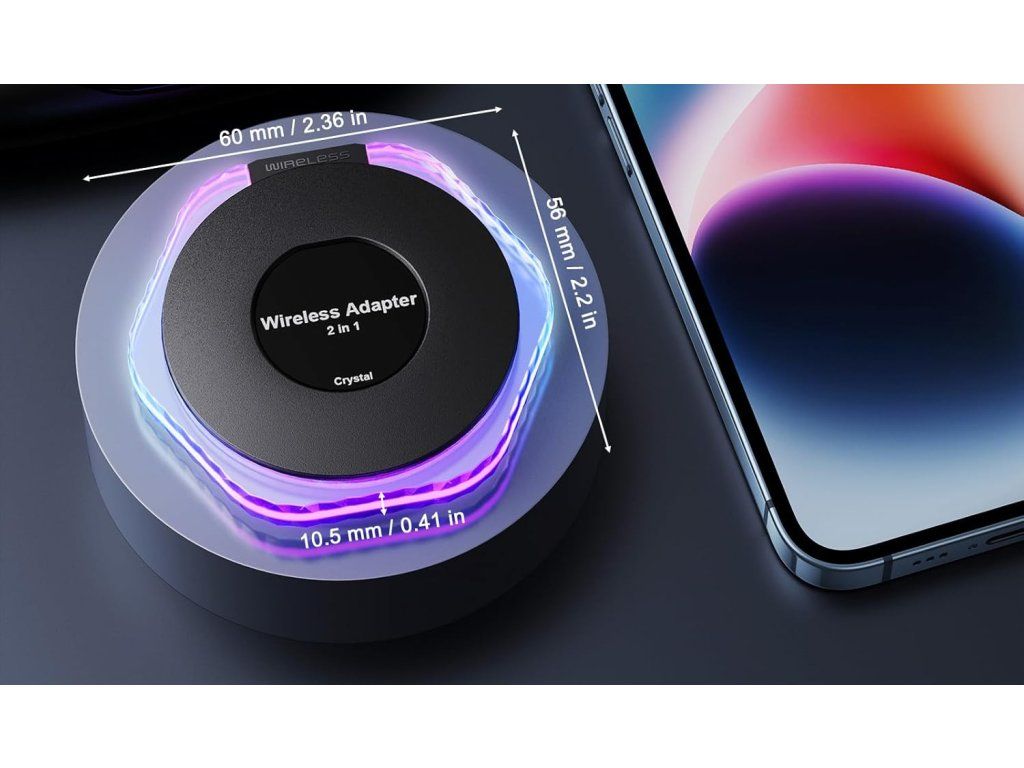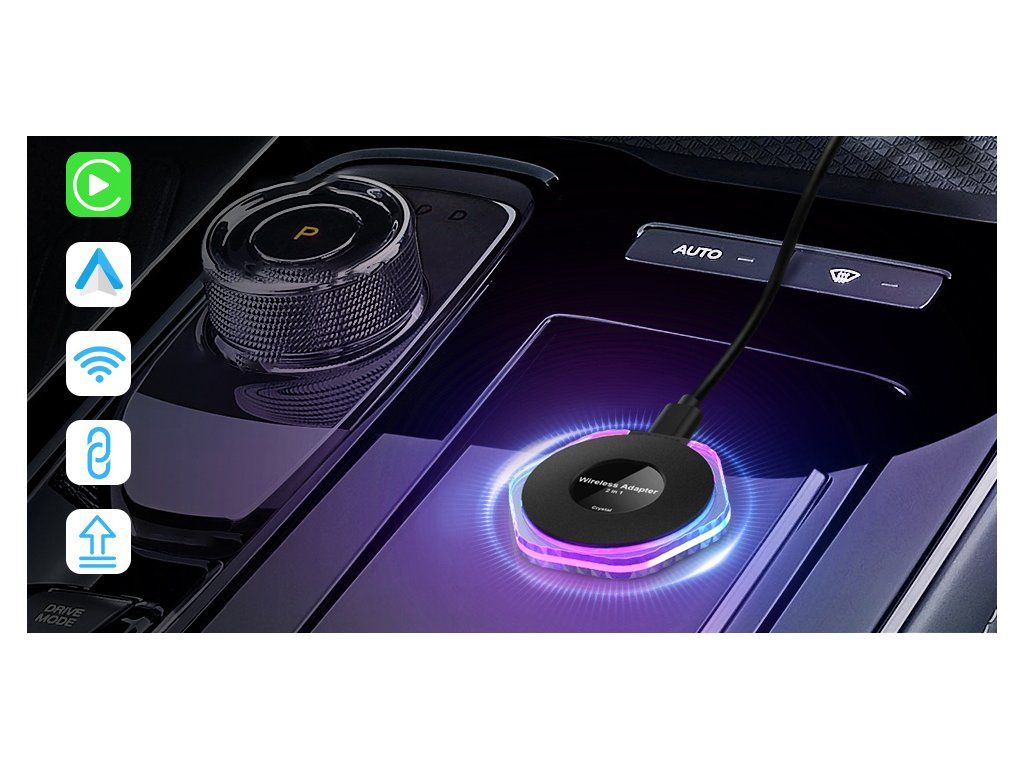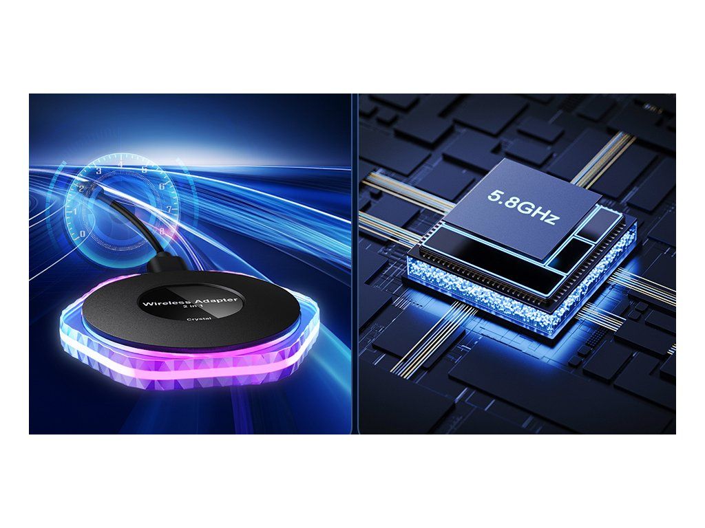 Hledáte bezdrátový CarPlay/Android Auto adaptér, který bude plnit i dekorační funkci? Jste na správném místě. Krystalový design s integrovaným RGB osvětlením zaručeně naplní vaše očekávání. Kromě toho je kompaktní, takže nezabírá téměř žádné místo.