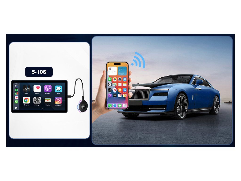 Bezdrátový adaptér CarPlay/Android Auto využívá moderní bezdrátovou technologii s nízkým zpožděním a vysokou stabilitou přenosu. To znamená rychlou odezvu při navigaci, plynulé přehrávání hudby a spolehlivé hands-free hovory.