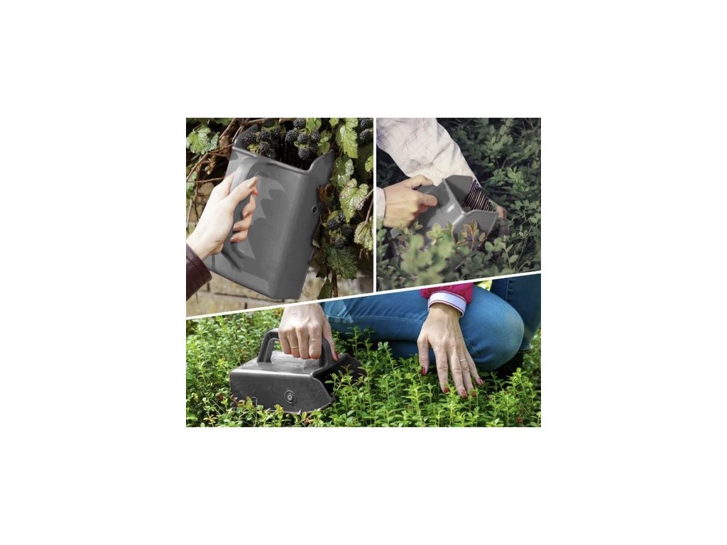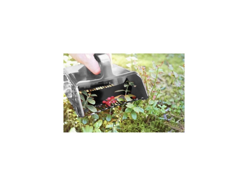 Ruční sběrač bobulí je navržen pro maximální efektivitu. Disponuje speciálním kovovým hřebenem se zaoblenými hroty, který dokáže najednou nabrat více bobulí bez jejich poškození. Samozřejmě, nechybí mu šetrnost ani vůči rostlinám.