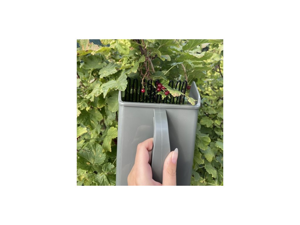 Ruční sběrač bobulového ovoce je univerzální. Můžete jej tedy používat na borůvky, maliny, aronie, rybíz, angrešt či dokonce lesní plody. Všechno drobné ovoce skončí v bezpečném koši sběrače, který následně vyprázdníte pouhým otočením dnem vzhůru.