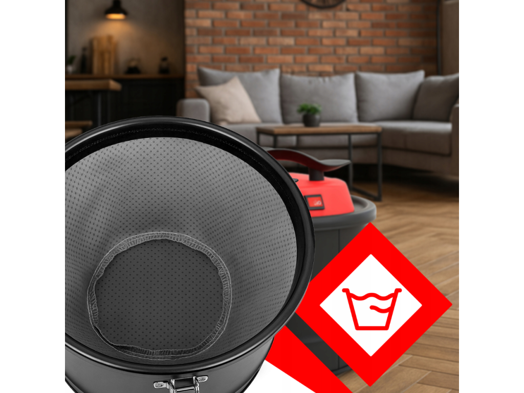 Filtr zajišťuje vysokou účinnost při zachytávání mikročástic a tím přiměřenou, zvýšenou kvalitu filtrace vzduchu a má skutečný vliv na to, co dýcháme. Inovativní způsob konstrukce zabraňuje vyfukování nejmenšího prachu ven a dezinfikuje vzduch, který jím prochází. Výkonné sání v kombinaci s opakovaně použitelným prachovým filtrem snižuje množství prachu ve vzduchu a pomáhá chránit motor před kontaminanty.