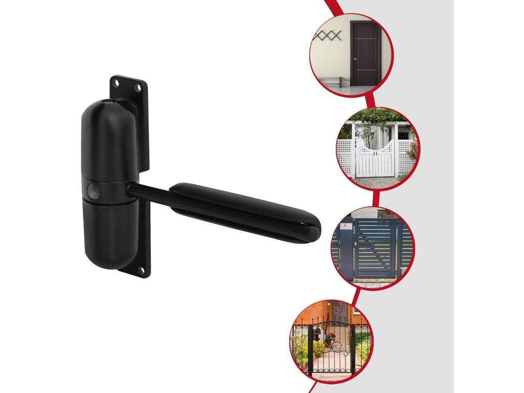 Praktický zavírač dveří a vrat zvládne bez problémů i robustnější dveře o hmotnosti až do 60 kg. Je ideální nejen pro běžné bytové dveře, ale i pro těžká bezpečnostní, protipožární nebo kovová vrata. Výborně se hodí k zajištění chodeb, sklepů nebo vstupních bran, kde je jistota zavření nezbytná.