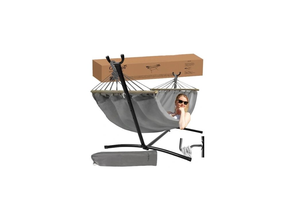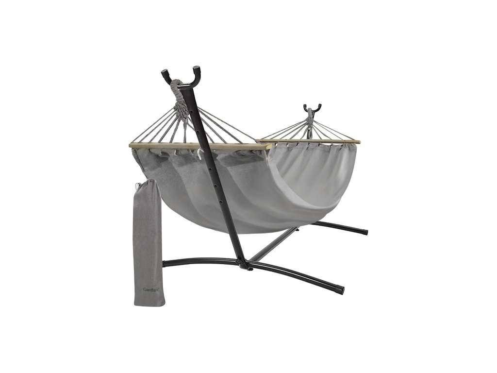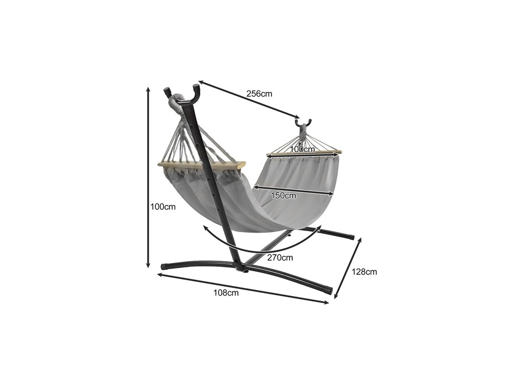 Zahradní houpací síť je vybavena pevným železným stojanem, který si zachovává svou stabilitu i při maximálním zatížení. Nechybí mu protiskluzové nožičky, díky kterým může pevně stát na jakémkoli povrchu.