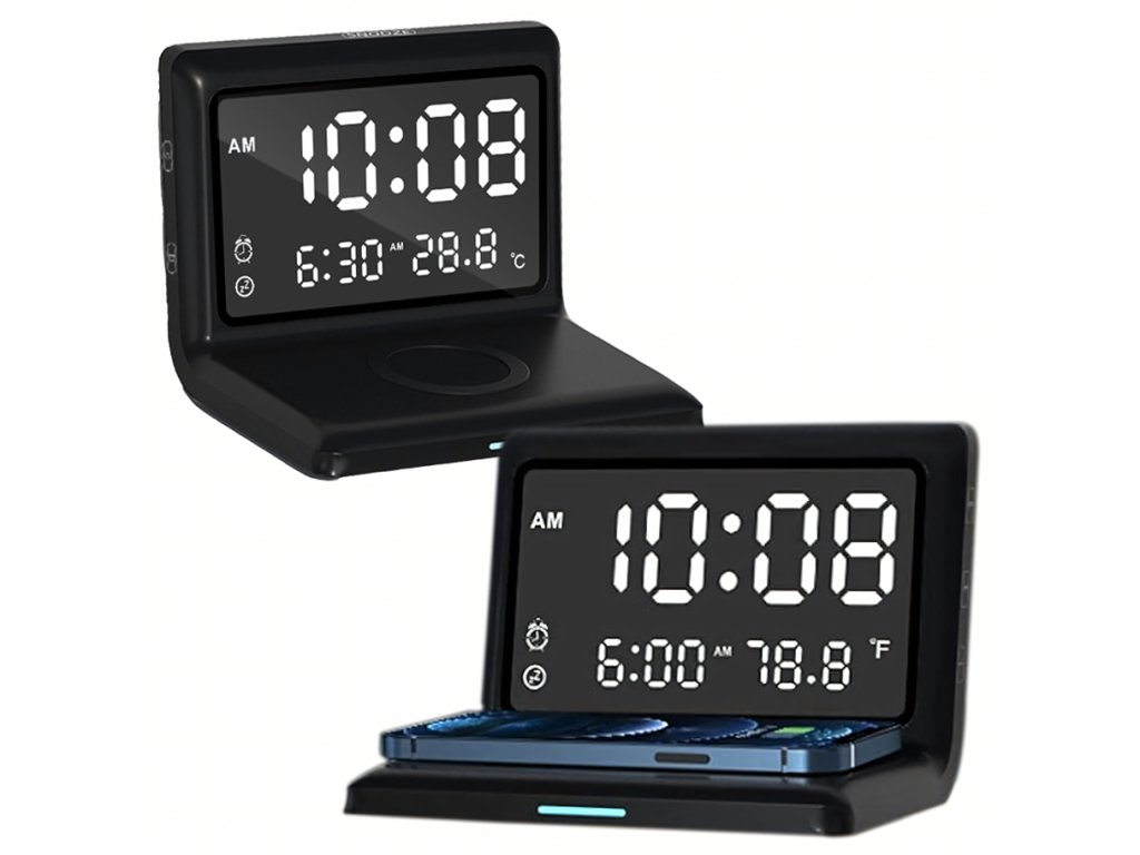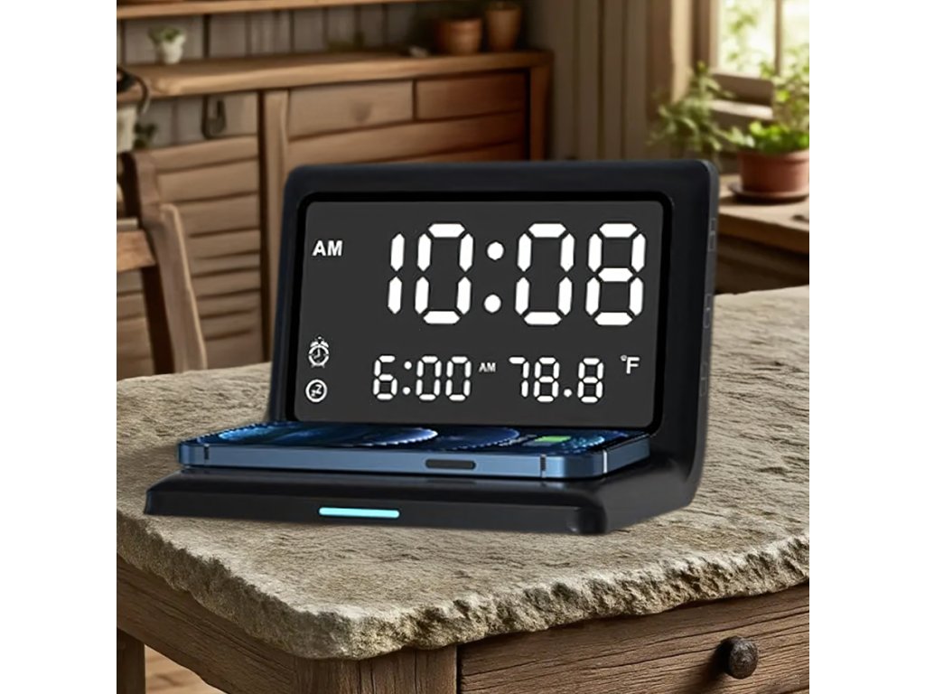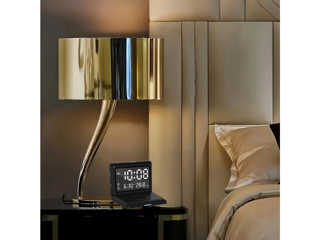 Vynikající digitální smart budík 3 v 1 plní hned tři úkoly najednou, abyste měli vše důležité vždy po ruce. Získáte přesný čas, okamžitý přehled o teplotě a možnost rychlého bezdrátového nabíjení , které vás zbaví nepořádku na stole. Je to řešení, které ušetří místo a zároveň zvýší komfort vašeho každodenního života.