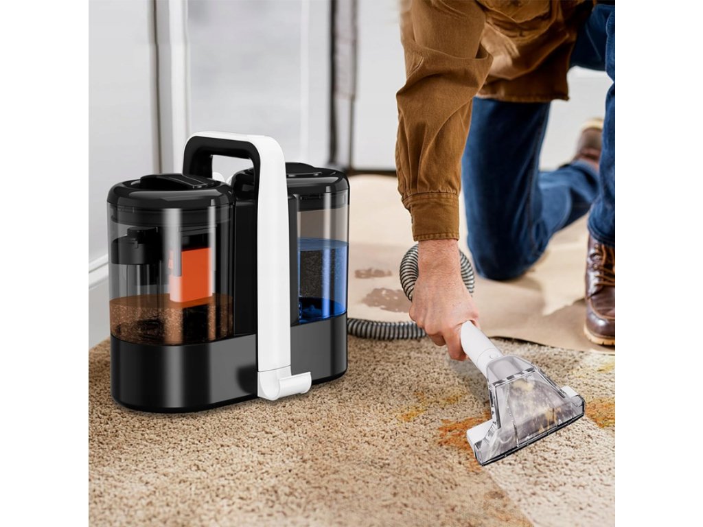 Tepovač má dvoukomorový systém , což znamená, že má oddělené nádoby na čistou a špinavou vodu . Celý proces čištění je tak hygieničtější. Nádoby mají navíc praktická madla a široké otvory , což oceníte při plnění, vylévání nebo údržbě.